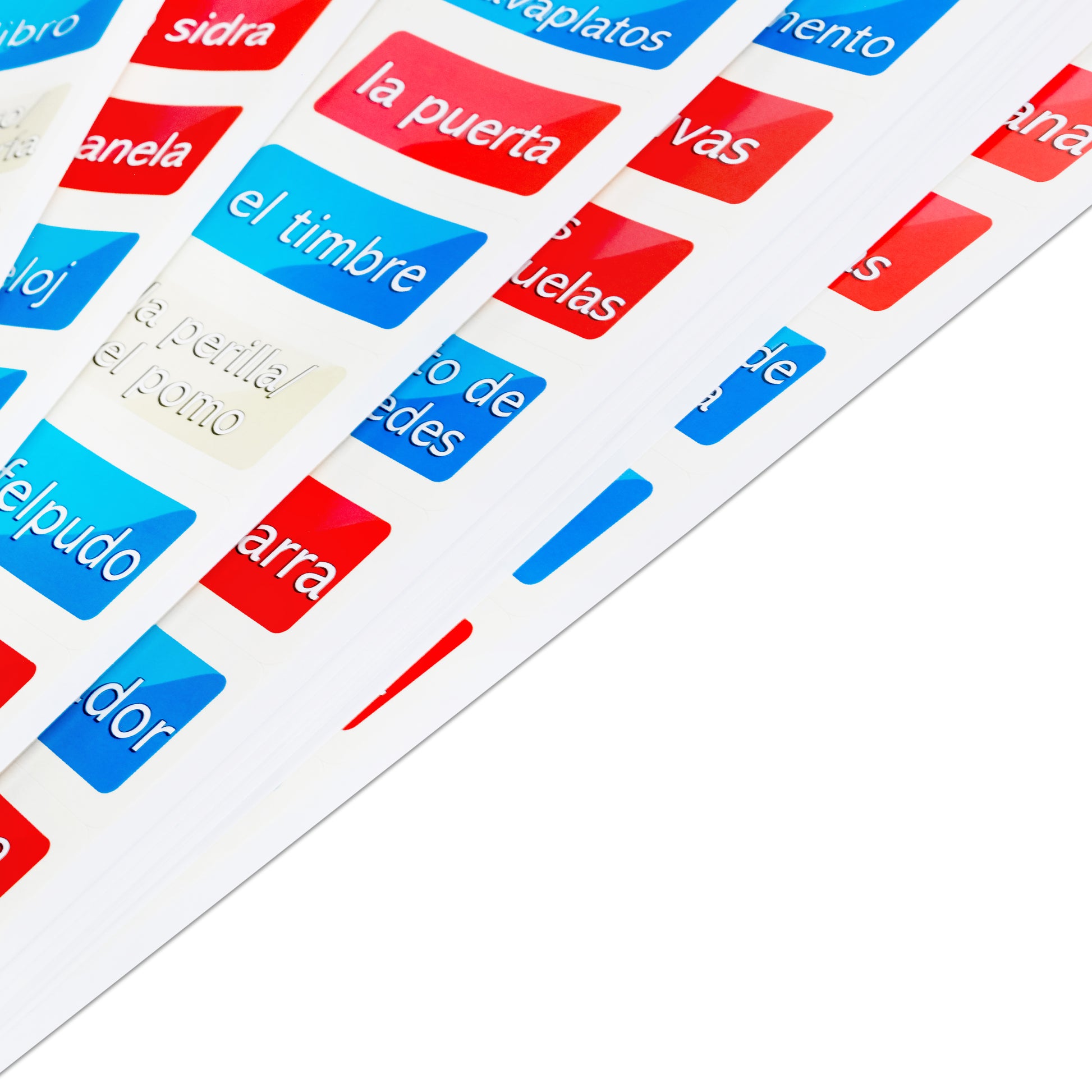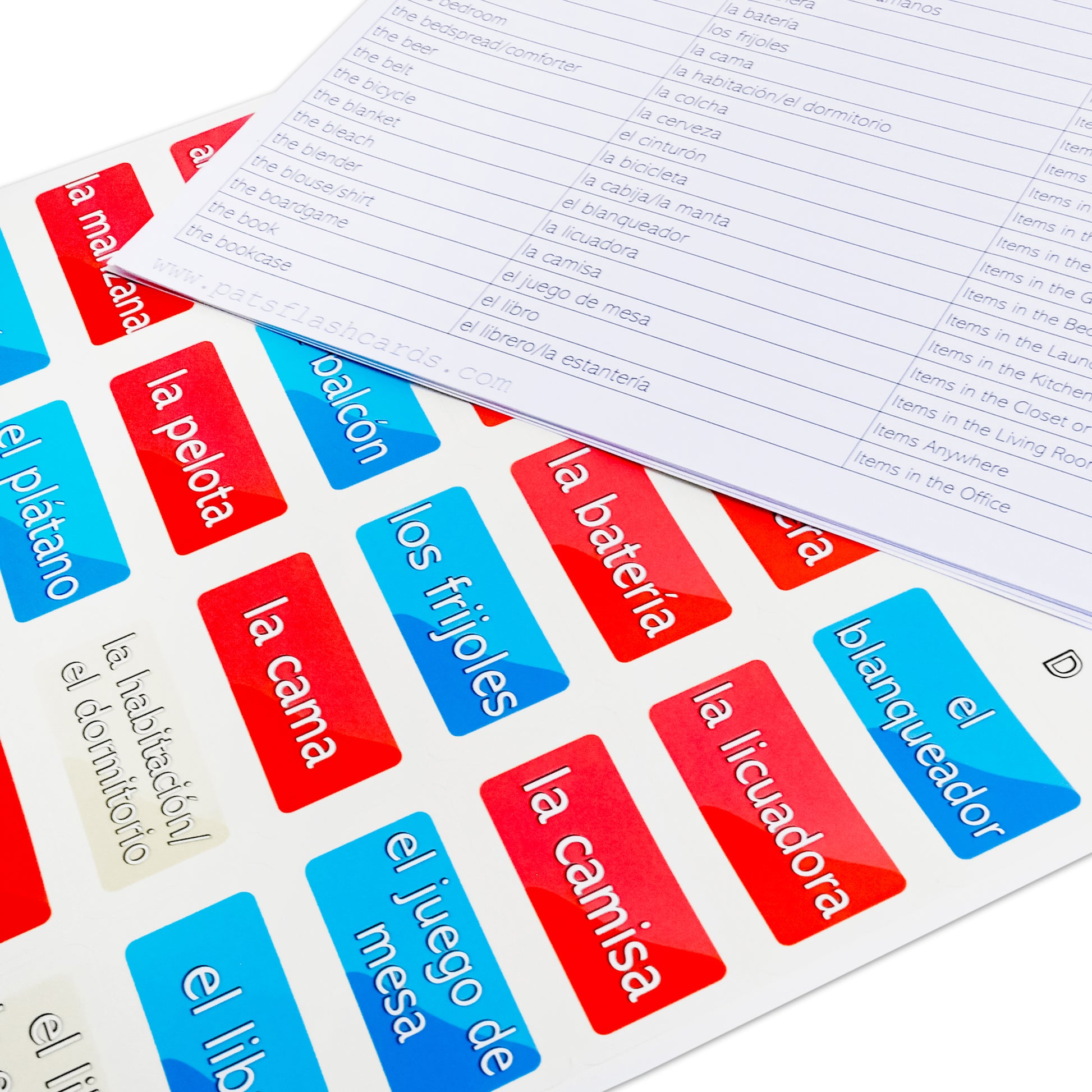 - NO ENGLISH ON THE STICKERS! What would be the point if the sticker has both Spanish and English on it? This would just force you to associate the word in Spanish with the English translation, not to the actual object itself.