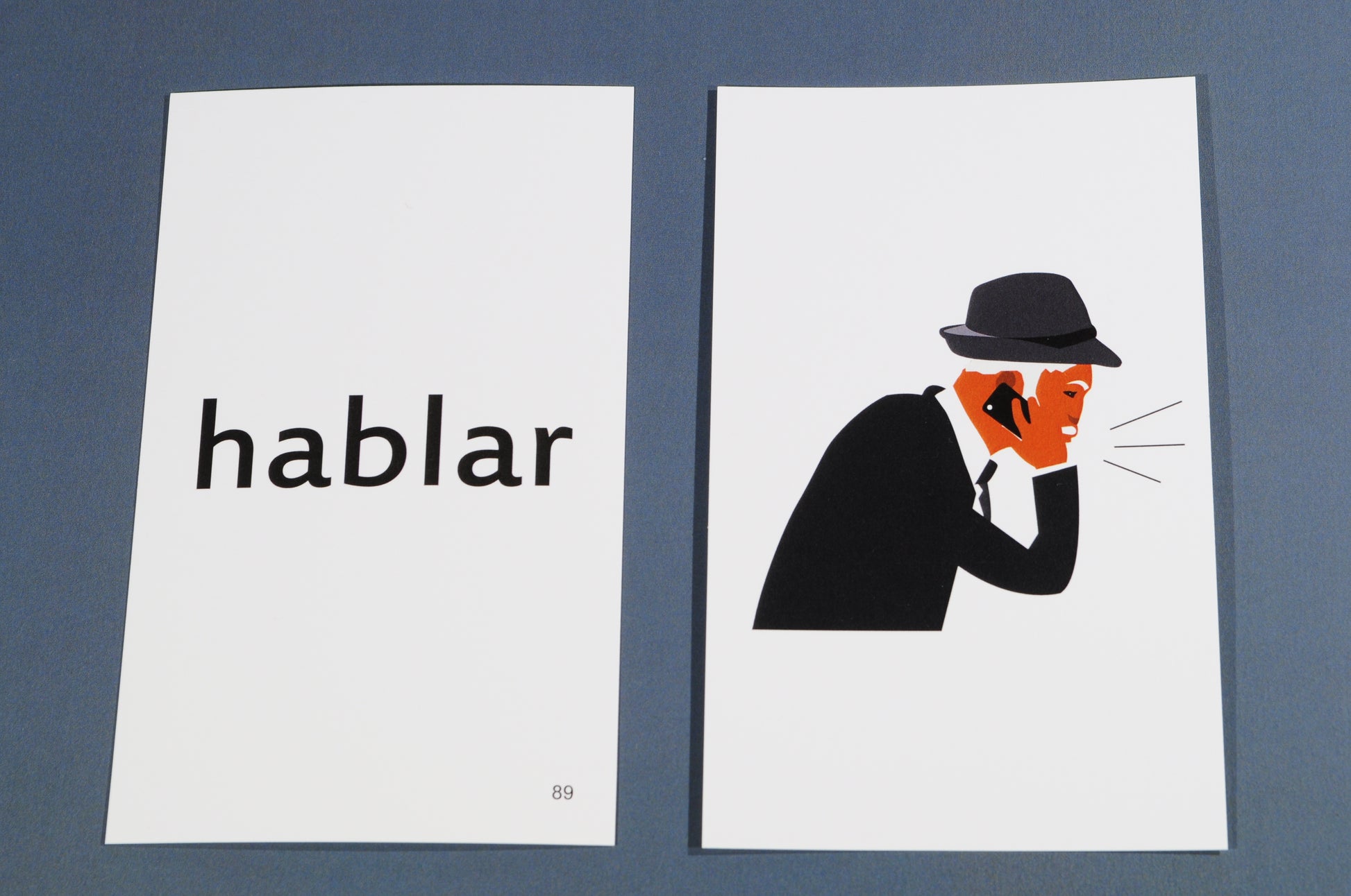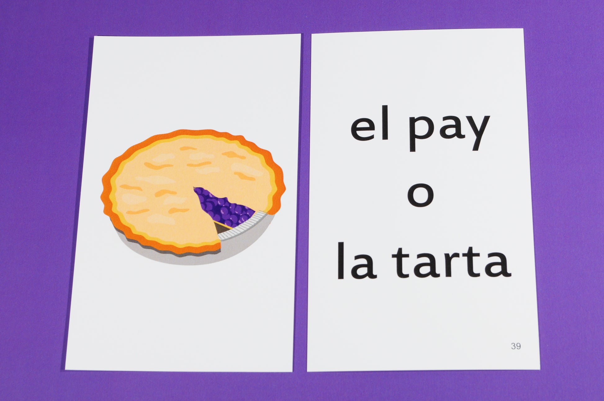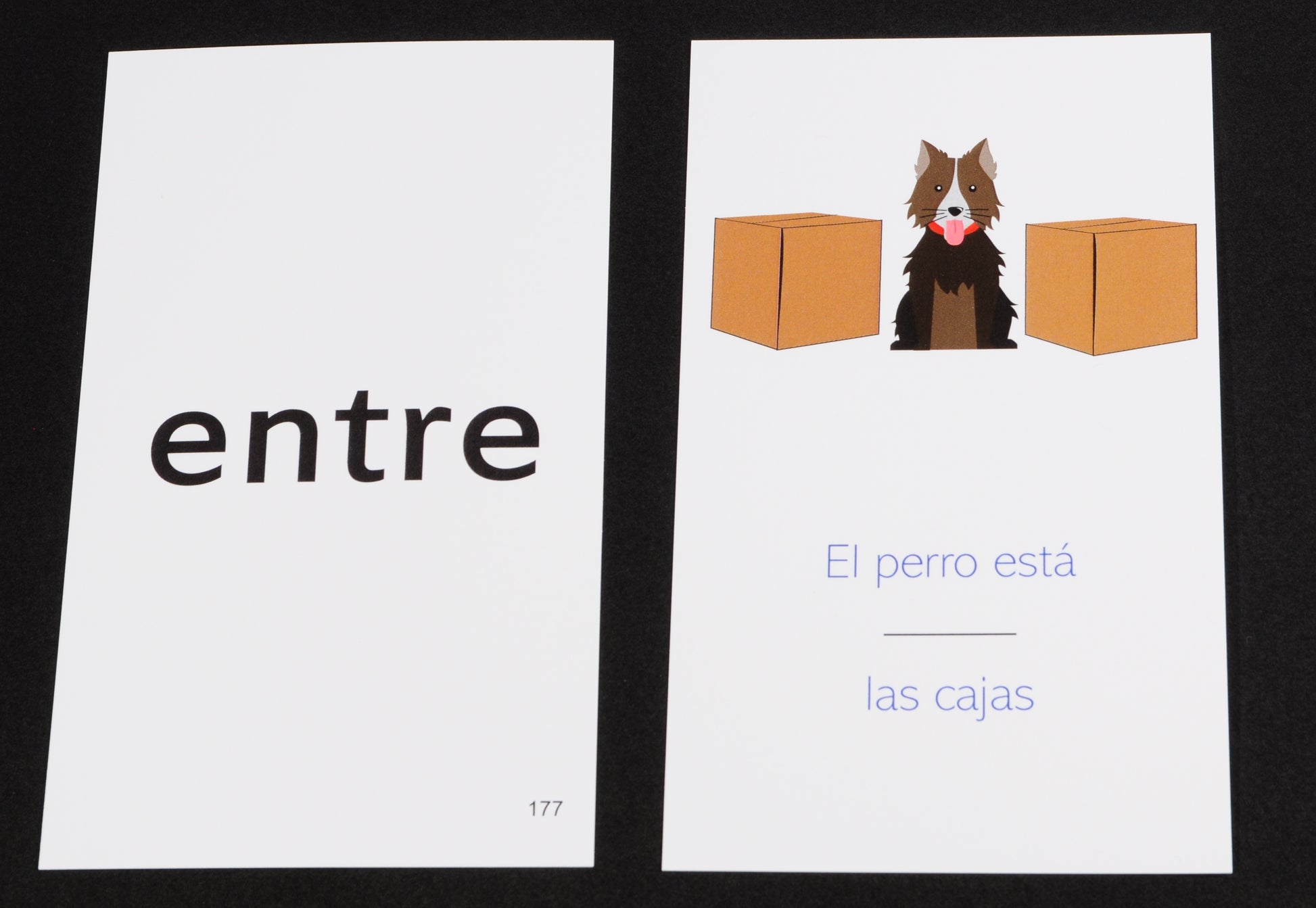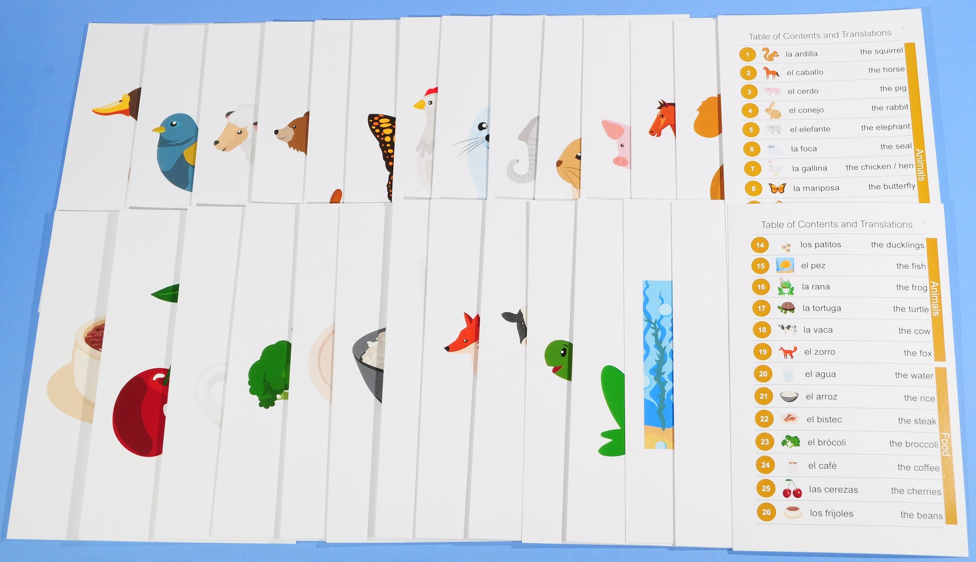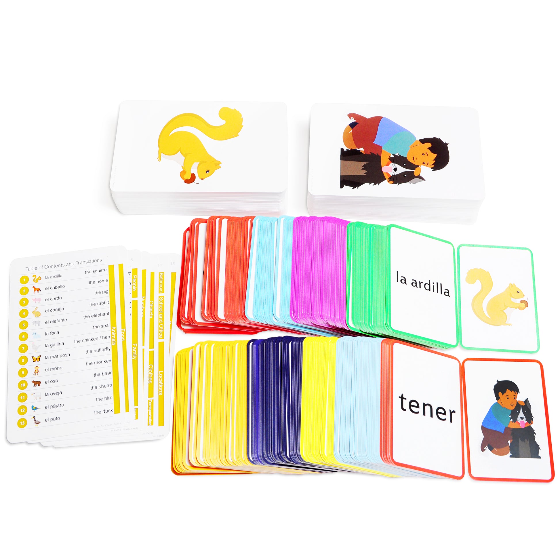 - NO ENGLISH on the cards means you must associate the Spanish with the pictures. There is also a comprehensive table of translations in case you don't know the English associated with the picture