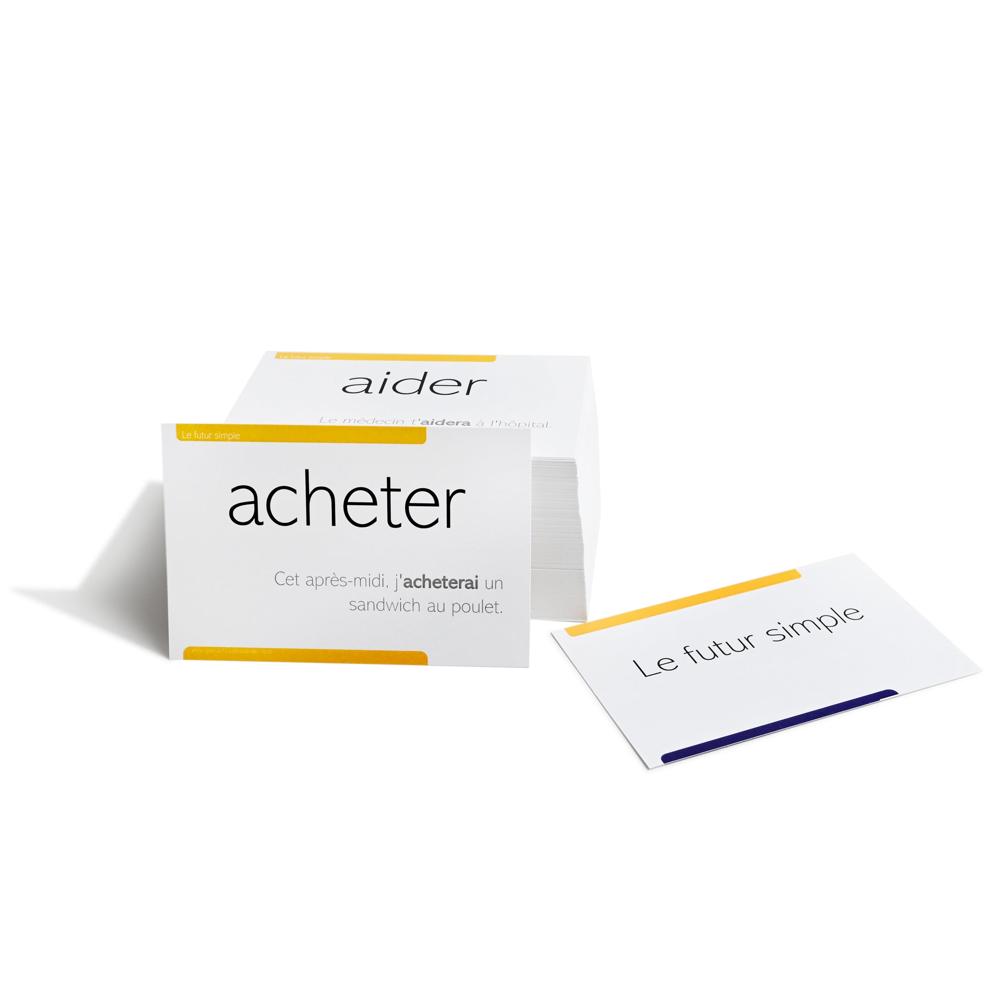 - Designed for students and self-learners, these cards are specifically catered for both children and adults to improve their vocabulary of French verbs and boost their experience with conjugations. All the example sentences in these cards use the vocabulary from our other products and are an excellent supplement to our set of French picture vocabulary flash cards.