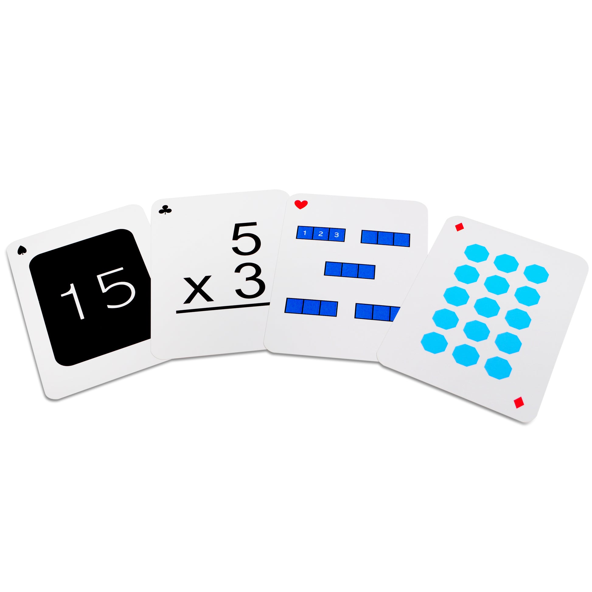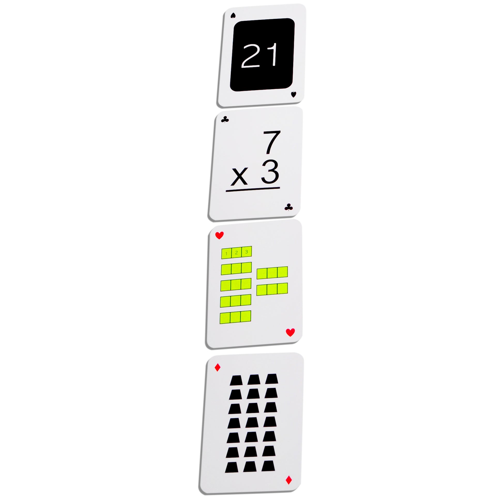- These multiplication playing cards are a direct replacement for any standard deck of cards. These cards have four suits (spades, clubs, diamonds, hearts) and 13 sequential cards per suit just like a standard deck of cards.